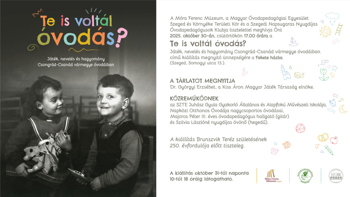 A Móra Ferenc Múzeum, a Magyar Óvodapedagógiai Egyesület Szeged és Környéke Területi Kör és a Szegedi Napsugaras Nyugdíjas Óvodapedagógusok Klubja tisztelettel meghívja Önt